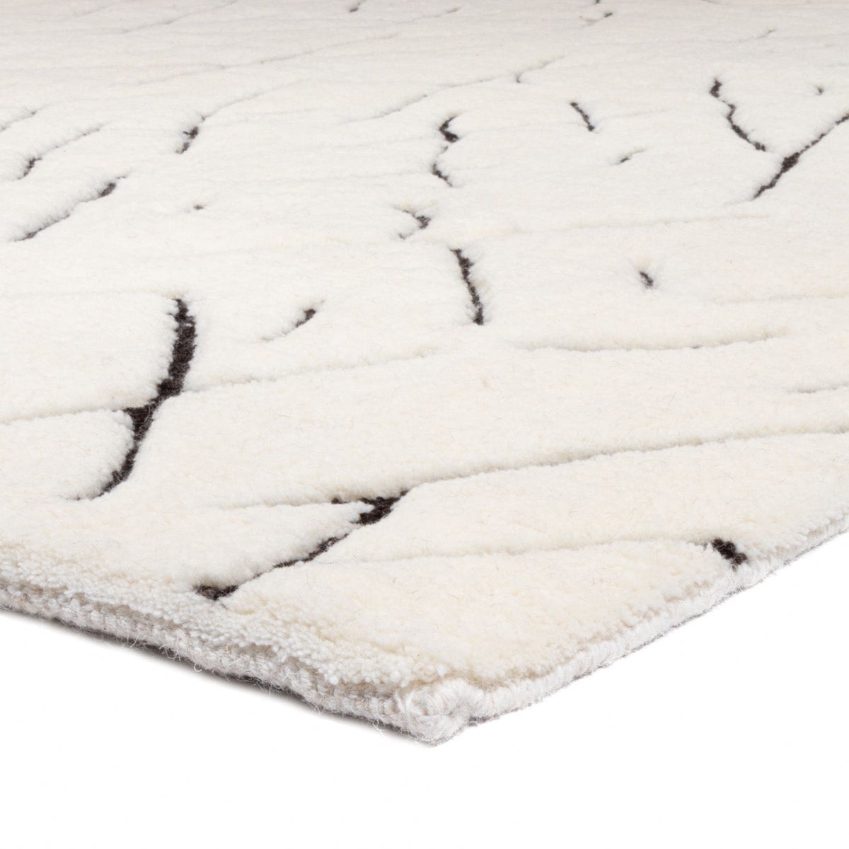Für diesen Teppich wird ausschließlich handgesponnene Schafwolle verwendet. Durch die sorgfältige, manuelle Verarbeitung bleiben die natürlichen Eigenschaften der Wolle optimal erhalten: Sie ist robust, elastisch und besitzt eine angenehme Weichheit, die man bei jedem Schritt spürt.