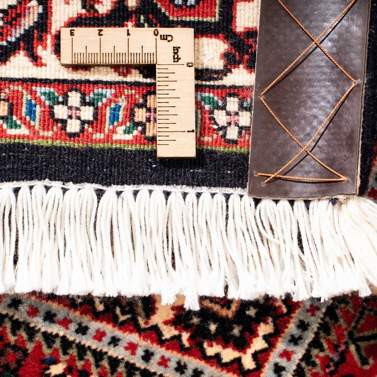 Ein Stück Orient für Zuhause! Dieser Bidjar Teppich stammt aus einer kurdischen Kleinstadt im westlichen Persien und ist bekannt für seine Strapazierfähigkeit und Robustheit durch seine besonders feste Knüpfung durch den traditionellen türkischen Knoten. Diese Technik macht den Teppich schmutzabweisend und garantiert seine Langlebigkeit: sein Flor wird mit einem Kamm so fest zusammengedrückt, dass er beinahe senkrecht nach oben steht. Beliebt ist das Herati-Muster als Design, es kommen jedoch auch Medaillon- und Blumenmusterungen vor.