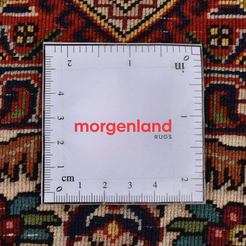 Ein Stück Orient für Zuhause! Dieser Bidjar Teppich stammt aus einer kurdischen Kleinstadt im westlichen Persien und ist bekannt für seine Strapazierfähigkeit und Robustheit durch seine besonders feste Knüpfung durch den traditionellen türkischen Knoten. Diese Technik macht den Teppich schmutzabweisend und garantiert seine Langlebigkeit: sein Flor wird mit einem Kamm so fest zusammengedrückt, dass er beinahe senkrecht nach oben steht. Beliebt ist das Herati-Muster als Design, es kommen jedoch auch Medaillon- und Blumenmusterungen vor.