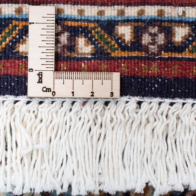Die handgesponnene Wolle verleiht dem Teppich eine einzigartige, leicht strukturierte Oberfläche mit dezentem Glanz – ein Zeichen echter Handwerkskunst. Gleichzeitig wirkt das Material temperaturausgleichend, schmutzabweisend und sorgt für ein behagliches Raumklima.