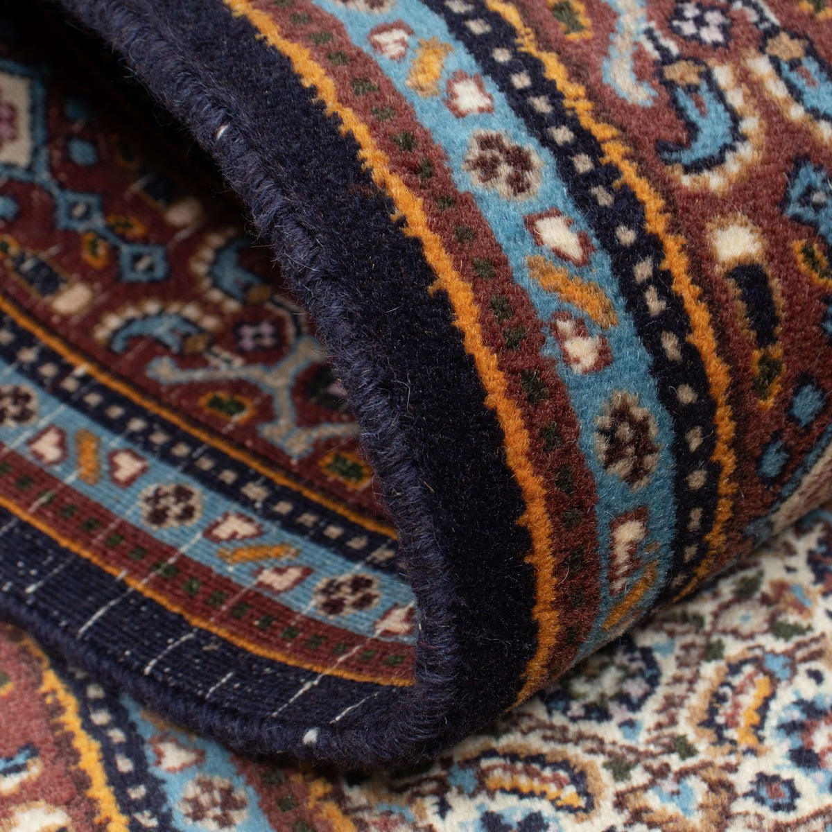 Der handgeknüpfte Teppich aus Moud, einer der größten Städte des Irans, ist ein echtes Kunstwerk. Er wurde aus reiner Naturwolle gefertigt und von erfahrenen Handwerkern sorgfältig geknüpft. Diese hochwertigen Teppiche sind bekannt für ihre außergewöhnlichen Größen und ihre extrem hochwertige Wolle. Neben ihrer Schönheit sind Moud-Teppiche auch äußerst pflegeleicht. Sie können einfach mit einem Staubsauger oder einem Besen gereinigt werden, um Schmutz und Staub zu entfernen. Wenn nötig, kann der Teppich auch mit einem milden Reinigungsmittel und Wasser gereinigt werden. Aufgrund ihrer hohen Qualität und ihrer langlebigen Natur sind Moud-Teppiche eine ausgezeichnete Investition für jeden Teppichliebhaber. Sie sind nicht nur eine schöne Ergänzung für jedes Zuhause, sondern auch eine pflegeleichte und praktische Wahl. Egal, ob Sie sich für einen klassischen oder einen modernen Stil entscheiden, ein Moud-Teppich wird Ihrem Zuhause eine unvergleichliche Eleganz und Stil verleihen.