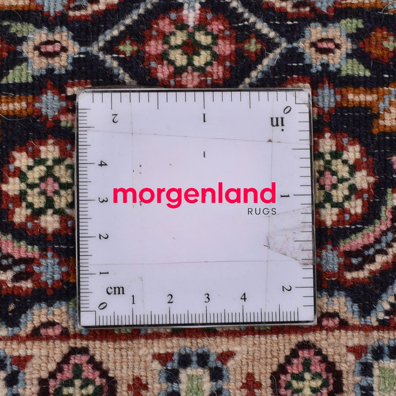 Der handgeknüpfte Teppich aus Moud, einer der größten Städte des Irans, ist ein echtes Kunstwerk. Er wurde aus reiner Naturwolle gefertigt und von erfahrenen Handwerkern sorgfältig geknüpft. Diese hochwertigen Teppiche sind bekannt für ihre außergewöhnlichen Größen und ihre extrem hochwertige Wolle.Neben ihrer Schönheit sind Moud-Teppiche auch äußerst pflegeleicht. Sie können einfach mit einem Staubsauger oder einem Besen gereinigt werden, um Schmutz und Staub zu entfernen. Wenn nötig, kann der Teppich auch mit einem milden Reinigungsmittel und Wasser gereinigt werden.Aufgrund ihrer hohen Qualität und ihrer langlebigen Natur sind Moud-Teppiche eine ausgezeichnete Investition für jeden Teppichliebhaber. Sie sind nicht nur eine schöne Ergänzung für jedes Zuhause, sondern auch eine pflegeleichte und praktische Wahl. Egal, ob Sie sich für einen klassischen oder einen modernen Stil entscheiden, ein Moud-Teppich wird Ihrem Zuhause eine unvergleichliche Eleganz und Stil verleihen.