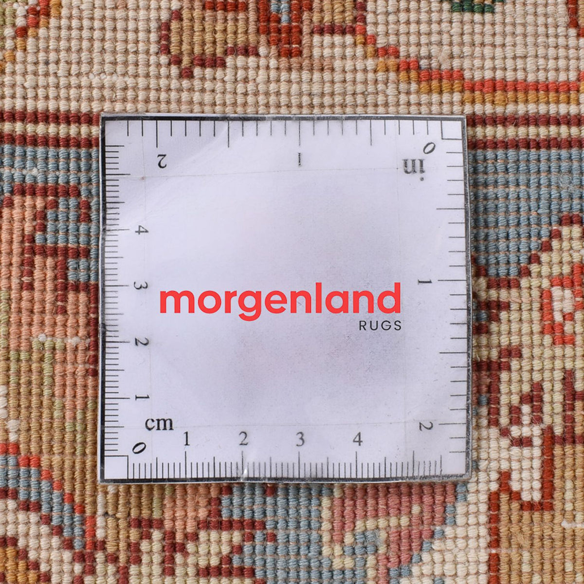 Traditionell von Hand geknüpfte Teppiche gelten nach wie vor als Inbegriff höchster Qualität unter den Teppicharten. Je nach Art der Knoten zeichnen sie sich durch außergewöhnliche Langlebigkeit und Widerstandsfähigkeit aus – oft überdauern sie mehrere Generationen. Die Feinheit der Knüpfung beeinflusst maßgeblich die Darstellung von Ornamenten und Mustern: Je dichter geknüpft, desto detailreicher das Design. Diese Präzision erfordert jedoch nicht nur viel Zeit, sondern auch ein hohes Maß an handwerklichem Geschick und Erfahrung. Die Knotendichte gilt daher als wichtiger Indikator für den Wert eines Teppichs. Dennoch bedeutet eine hohe Knüpfdichte nicht automatisch bessere Qualität – auch Teppiche mit groberer Struktur können hervorragend verarbeitet sein.