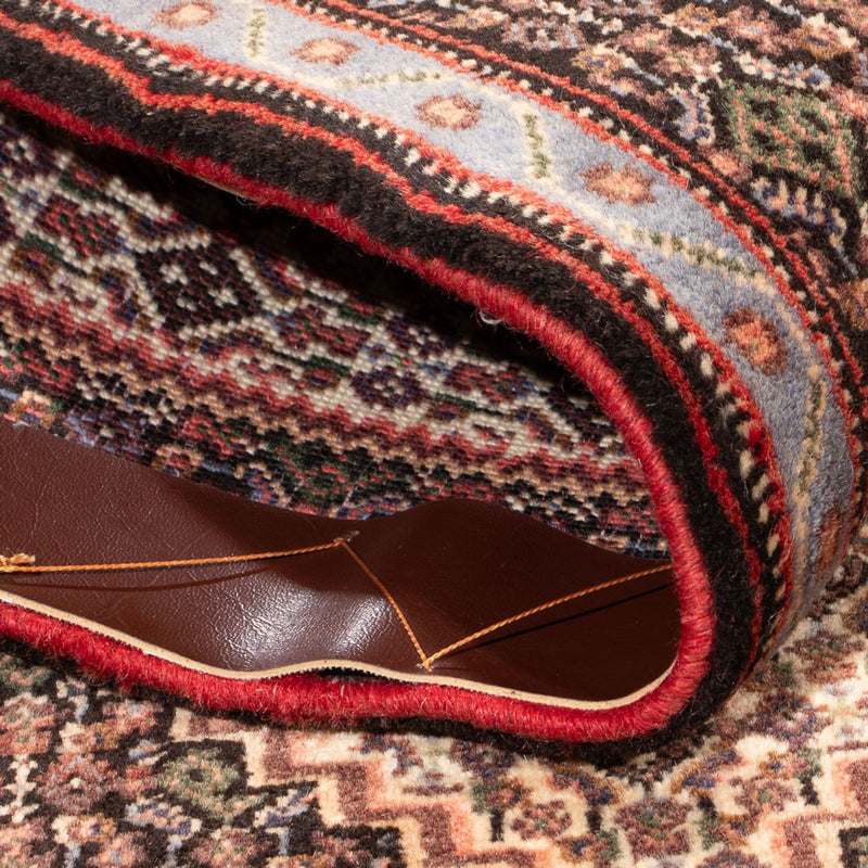 Der Senneh Teppich ist handgefertigt und besteht aus robustem Material. Er ist in der Provinz Kurdistan im westlichen Teil des Irans geknüpft worden und ist besonders langlebig und widerstandsfähig. Sein detailreiches Muster und seine belastbare Struktur machen ihn zu einem perfekten Wohnelement für stark frequentierte Räume wie Flur oder Wohnzimmer.