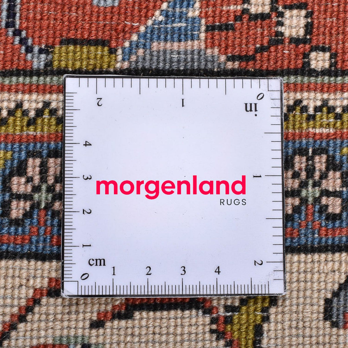 Sarough gehört zu den wichtigsten Teppich-Provenienzen des Iran. Der Sarough verbindet modernes Wohnen mit traditioneller Knüpfkunst. Durch seine robuste Knüpfung ist der Sarough ein strapazierfähiger Teppich mit hoher Schall- und Wärmeisolierung. Die verwendete Wolle hat eine hohe Qualität, ist glänzend und die Teppiche sind robust und strapazierfähig. Die Knüpfungen sind sehr fein und der Flor relativ hoch. Sein zeitloses Design fügt sich problemlos in die Umgebung ein und verleiht ihr ein behagliches Wohngefühl. Heute werden in Sarough Teppiche verschiedenster Qualitäten geknüpft. Die Mustervielfalt der Teppiche gehört zu den reichhaltigsten und traditionellsten des ganzen Orients und kann somit nicht verallgemeinert werden. Bekannt sind sie für Ihre wunderschönen Medaillons, sowie auch für das bekannte durchgemusterte Mir Muster.