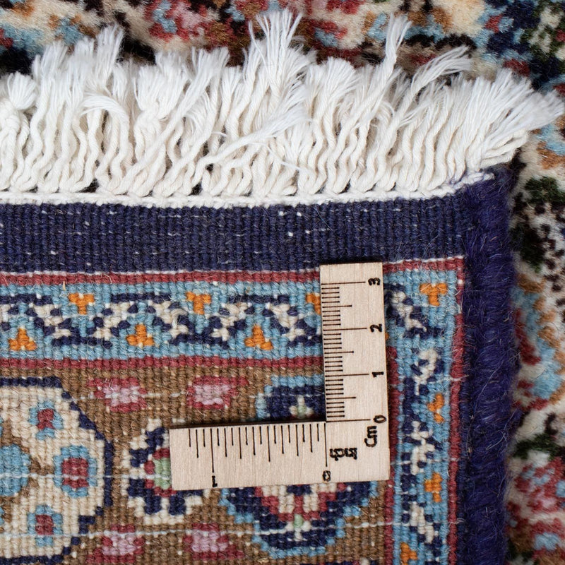 Der handgeknüpfte Teppich aus Moud, einer der größten Städte des Irans, ist ein echtes Kunstwerk. Er wurde aus reiner Naturwolle gefertigt und von erfahrenen Handwerkern sorgfältig geknüpft. Diese hochwertigen Teppiche sind bekannt für ihre außergewöhnlichen Größen und ihre extrem hochwertige Wolle. Neben ihrer Schönheit sind Moud-Teppiche auch äußerst pflegeleicht. Sie können einfach mit einem Staubsauger oder einem Besen gereinigt werden, um Schmutz und Staub zu entfernen. Wenn nötig, kann der Teppich auch mit einem milden Reinigungsmittel und Wasser gereinigt werden. Aufgrund ihrer hohen Qualität und ihrer langlebigen Natur sind Moud-Teppiche eine ausgezeichnete Investition für jeden Teppichliebhaber. Sie sind nicht nur eine schöne Ergänzung für jedes Zuhause, sondern auch eine pflegeleichte und praktische Wahl. Egal, ob Sie sich für einen klassischen oder einen modernen Stil entscheiden, ein Moud-Teppich wird Ihrem Zuhause eine unvergleichliche Eleganz und Stil verleihen.