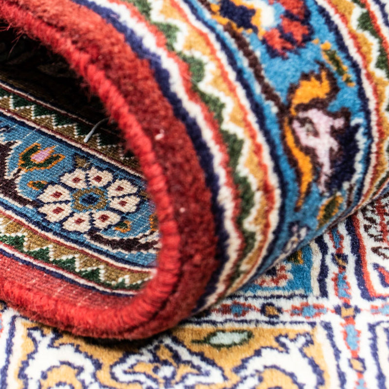 Der handgeknüpfte Teppich aus Moud, einer der größten Städte des Irans, ist ein echtes Kunstwerk. Er wurde aus reiner Naturwolle gefertigt und von erfahrenen Handwerkern sorgfältig geknüpft. Diese hochwertigen Teppiche sind bekannt für ihre außergewöhnlichen Größen und ihre extrem hochwertige Wolle. Neben ihrer Schönheit sind Moud-Teppiche auch äußerst pflegeleicht. Sie können einfach mit einem Staubsauger oder einem Besen gereinigt werden, um Schmutz und Staub zu entfernen. Wenn nötig, kann der Teppich auch mit einem milden Reinigungsmittel und Wasser gereinigt werden. Aufgrund ihrer hohen Qualität und ihrer langlebigen Natur sind Moud-Teppiche eine ausgezeichnete Investition für jeden Teppichliebhaber. Sie sind nicht nur eine schöne Ergänzung für jedes Zuhause, sondern auch eine pflegeleichte und praktische Wahl. Egal, ob Sie sich für einen klassischen oder einen modernen Stil entscheiden, ein Moud-Teppich wird Ihrem Zuhause eine unvergleichliche Eleganz und Stil verleihen.