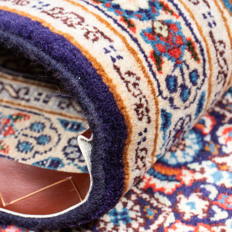 Der handgeknüpfte Teppich aus Moud, einer der größten Städte des Irans, ist ein echtes Kunstwerk. Er wurde aus reiner Naturwolle gefertigt und von erfahrenen Handwerkern sorgfältig geknüpft. Diese hochwertigen Teppiche sind bekannt für ihre außergewöhnlichen Größen und ihre extrem hochwertige Wolle. Neben ihrer Schönheit sind Moud-Teppiche auch äußerst pflegeleicht. Sie können einfach mit einem Staubsauger oder einem Besen gereinigt werden, um Schmutz und Staub zu entfernen. Wenn nötig, kann der Teppich auch mit einem milden Reinigungsmittel und Wasser gereinigt werden. Aufgrund ihrer hohen Qualität und ihrer langlebigen Natur sind Moud-Teppiche eine ausgezeichnete Investition für jeden Teppichliebhaber. Sie sind nicht nur eine schöne Ergänzung für jedes Zuhause, sondern auch eine pflegeleichte und praktische Wahl. Egal, ob Sie sich für einen klassischen oder einen modernen Stil entscheiden, ein Moud-Teppich wird Ihrem Zuhause eine unvergleichliche Eleganz und Stil verleihen.