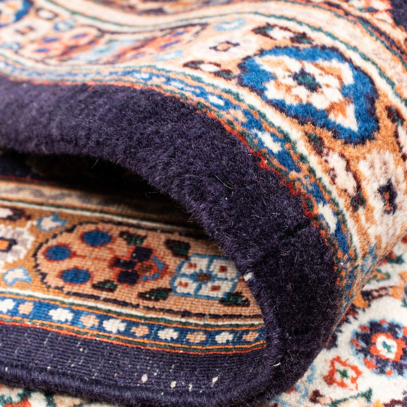 Der handgeknüpfte Teppich aus Moud, einer der größten Städte des Irans, ist ein echtes Kunstwerk. Er wurde aus reiner Naturwolle gefertigt und von erfahrenen Handwerkern sorgfältig geknüpft. Diese hochwertigen Teppiche sind bekannt für ihre außergewöhnlichen Größen und ihre extrem hochwertige Wolle. Neben ihrer Schönheit sind Moud-Teppiche auch äußerst pflegeleicht. Sie können einfach mit einem Staubsauger oder einem Besen gereinigt werden, um Schmutz und Staub zu entfernen. Wenn nötig, kann der Teppich auch mit einem milden Reinigungsmittel und Wasser gereinigt werden. Aufgrund ihrer hohen Qualität und ihrer langlebigen Natur sind Moud-Teppiche eine ausgezeichnete Investition für jeden Teppichliebhaber. Sie sind nicht nur eine schöne Ergänzung für jedes Zuhause, sondern auch eine pflegeleichte und praktische Wahl. Egal, ob Sie sich für einen klassischen oder einen modernen Stil entscheiden, ein Moud-Teppich wird Ihrem Zuhause eine unvergleichliche Eleganz und Stil verleihen.