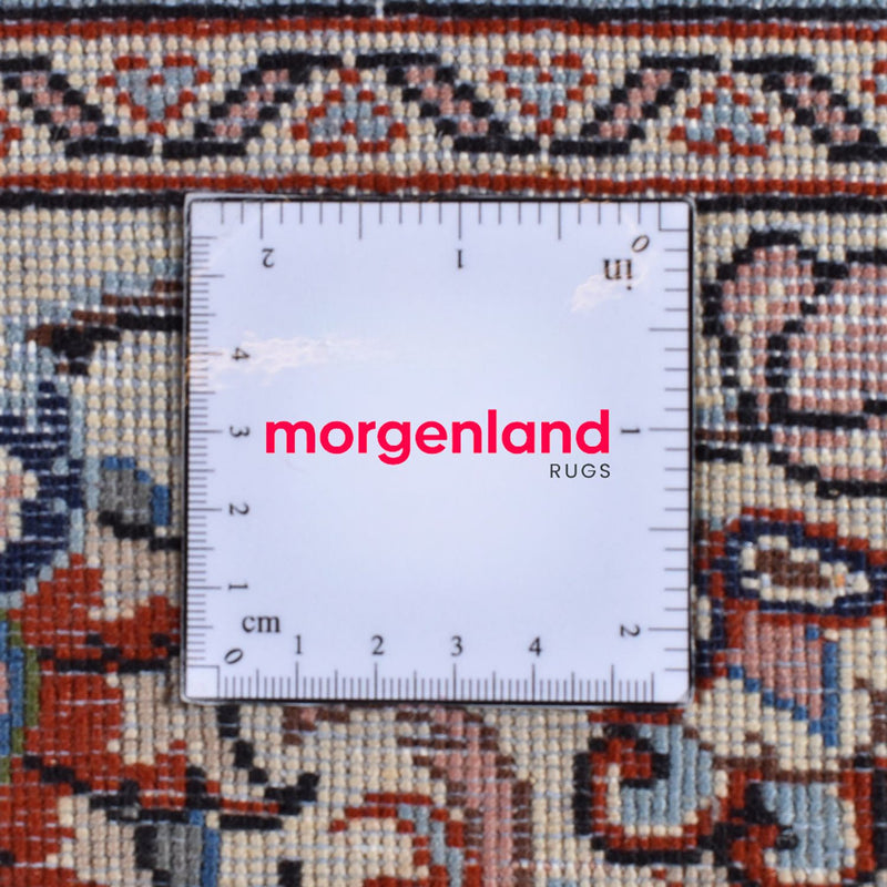 Sarough gehört zu den wichtigsten Teppich-Provenienzen des Iran. Der Sarough verbindet modernes Wohnen mit traditioneller Knüpfkunst. Durch seine robuste Knüpfung ist der Sarough ein strapazierfähiger Teppich mit hoher Schall- und Wärmeisolierung. Die verwendete Wolle hat eine hohe Qualität, ist glänzend und die Teppiche sind robust und strapazierfähig. Die Knüpfungen sind sehr fein und der Flor relativ hoch. Sein zeitloses Design fügt sich problemlos in die Umgebung ein und verleiht ihr ein behagliches Wohngefühl. Heute werden in Sarough Teppiche verschiedenster Qualitäten geknüpft. Die Mustervielfalt der Teppiche gehört zu den reichhaltigsten und traditionellsten des ganzen Orients und kann somit nicht verallgemeinert werden. Bekannt sind sie für Ihre wunderschönen Medaillons, sowie auch für das bekannte durchgemusterte Mir Muster.