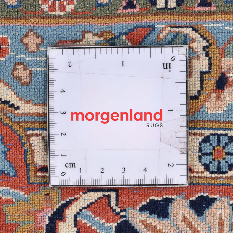 Der Kerman Teppich zeichnet sich allgemein durch sein sehr feines Flormaterial aus, verbunden mit einer überaus reichen floralen Musterung. Berühmt für Kermans ist das großflächige Medaillonmuster, welches mit unifarbener Freifläche gestaltet ist, die dann als Spiegel-Kermans bezeichnet werden. Teppiche aus Kerman waren lange Zeit in Häusern einflussreicher und wohlhabender Familien zu finden. Klare Farben und schönes Design sind das Markenzeichen dieser handgeknüpften Teppiche aus persischer Hochlandwolle. Diese ausführlich gestaltende, Aufsehen erregende, im Detail stark auffallende Perserteppiche sind eine Attraktion für Ihre Räumlichkeit. Ein faszinierender Teppich der Qualität verspricht.