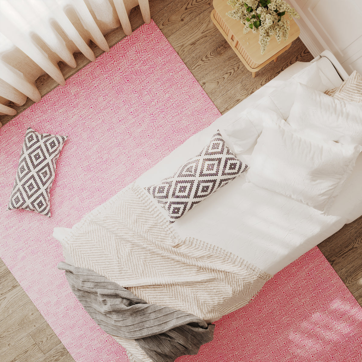 Disponible dans les couleurs vives rose, bleu, turquoise et jaune, le tapis d'intérieur et d'extérieur "Alef" est disponible sous forme de tapis ou de rectangle. Il est tissé à la main à partir de PET recyclé et offre ainsi une option à la fois écologique et stylée pour chaque espace de vie. Que ce soit dans la cuisine, la salle de bain, sur la terrasse ou le balcon, le "Alef" se distingue par sa polyvalence et sa durabilité. Le tapis est antisalissure, ne peluche pas et, grâce à ses fibres synthétiques douces, il est particulièrement facile à entretenir, ce qui en fait le compagnon idéal des propriétaires d'animaux domestiques. Il confère à chaque pièce, intérieure ou extérieure, une atmosphère agréable et accueillante. Découvrez les avantages d'"Alef" et apportez couleur et confort à votre intérieur.