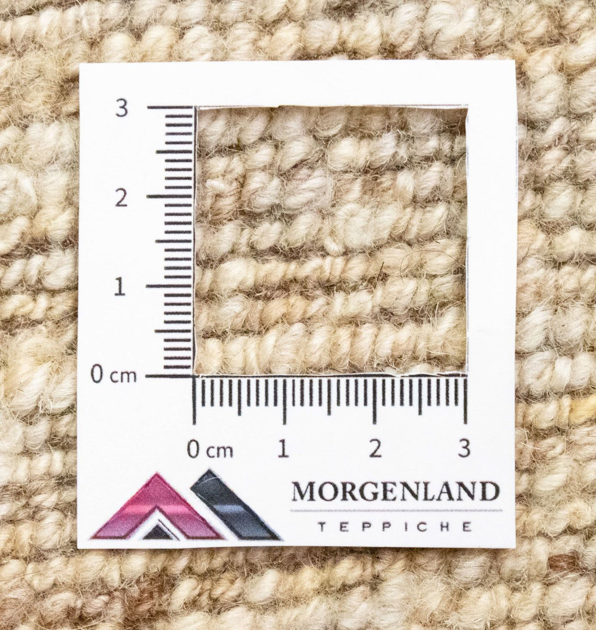Für diesen Teppich wird ausschließlich handgesponnene Schafwolle verwendet. Durch die sorgfältige, manuelle Verarbeitung bleiben die natürlichen Eigenschaften der Wolle optimal erhalten: Sie ist robust, elastisch und besitzt eine angenehme Weichheit, die man bei jedem Schritt spürt.