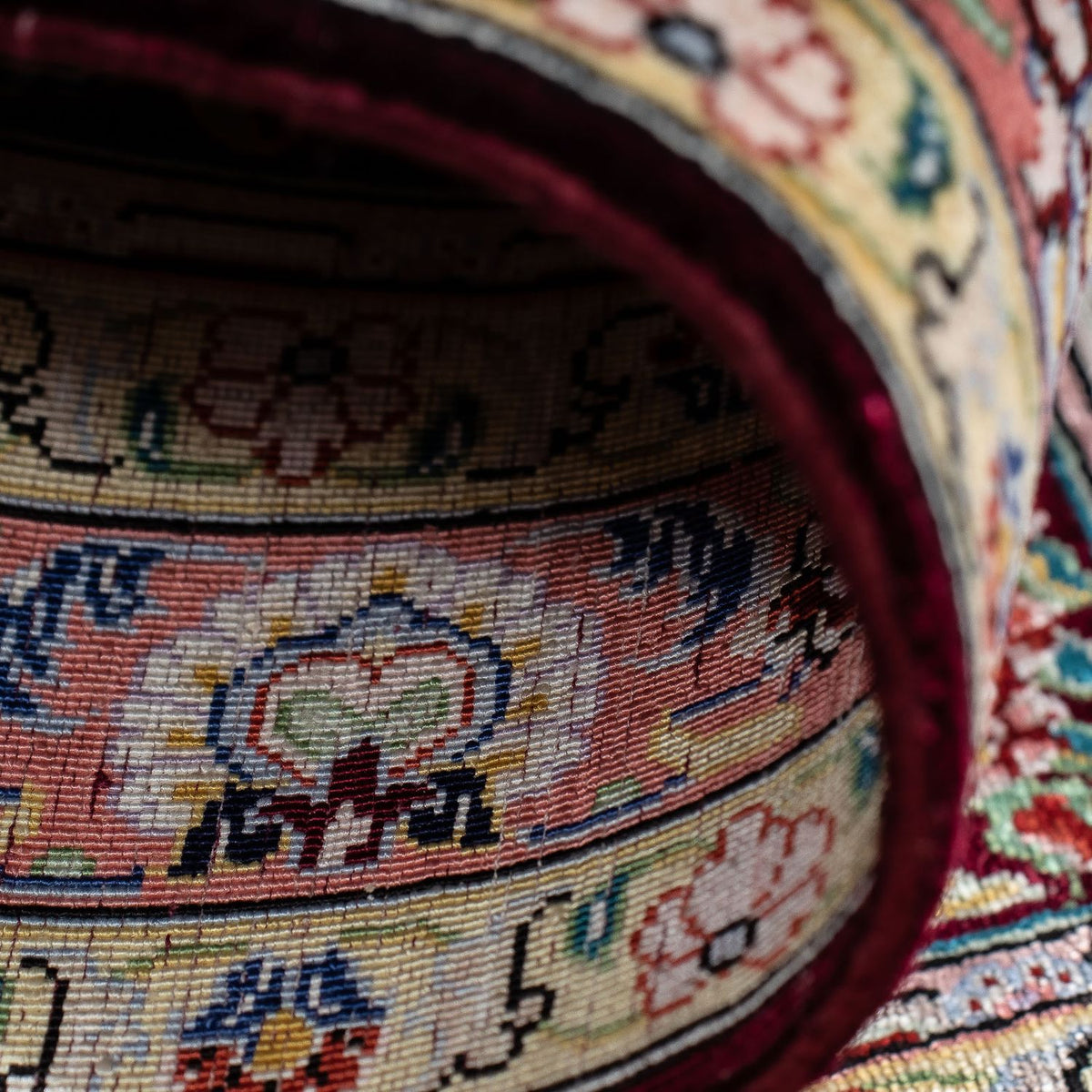 Diese wunderschönen Teppiche werden in der heiligen Stadt Ghom in Zentralpersien geknüpft. Der Ghom Teppich gehört zu den exklusivsten Knüpfkunstwerken des Orients. Es gibt ihn in drei Variationen: Korkwolle auf Baumwolle, Korkwolle mit Seide auf Baumwolle und Seide auf Seide. Selbst die Ghom Teppich-Variation Korkwolle auf Baumwolle ist hervorragend. Korkwolle stammt von der Schur des Lammhalses. Sie ist weich und fetthaltig, extrem schmutzabweisend und äußerst strapazierfähig. Aus der Korkwolle können besonders dünne Fäden gesponnen werden, die in dichten Knüpfknoten ein feines Gewebe ergeben. Die weiteren Ghom Teppich-Variationen sprechen für sich selbst. Je mehr Seidenanteil ein Teppich besitzt, umso feiner ist die Knüpfung, das Muster ist detaillierter, die Qualität des Teppichs ist höher.