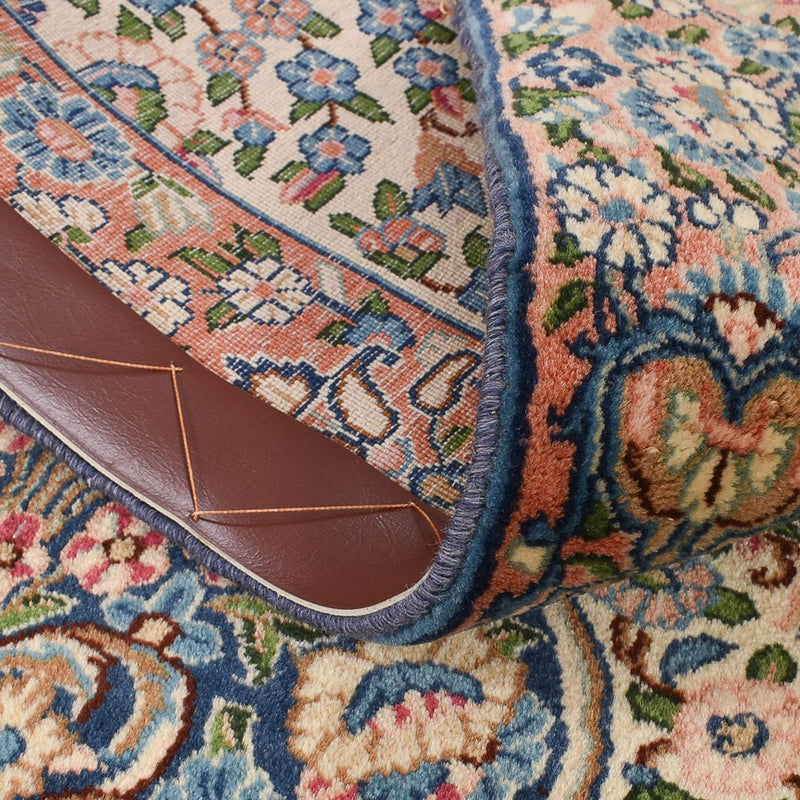 Die handgesponnene Wolle verleiht dem Teppich eine einzigartige, leicht strukturierte Oberfläche mit dezentem Glanz – ein Zeichen echter Handwerkskunst. Gleichzeitig wirkt das Material temperaturausgleichend, schmutzabweisend und sorgt für ein behagliches Raumklima.