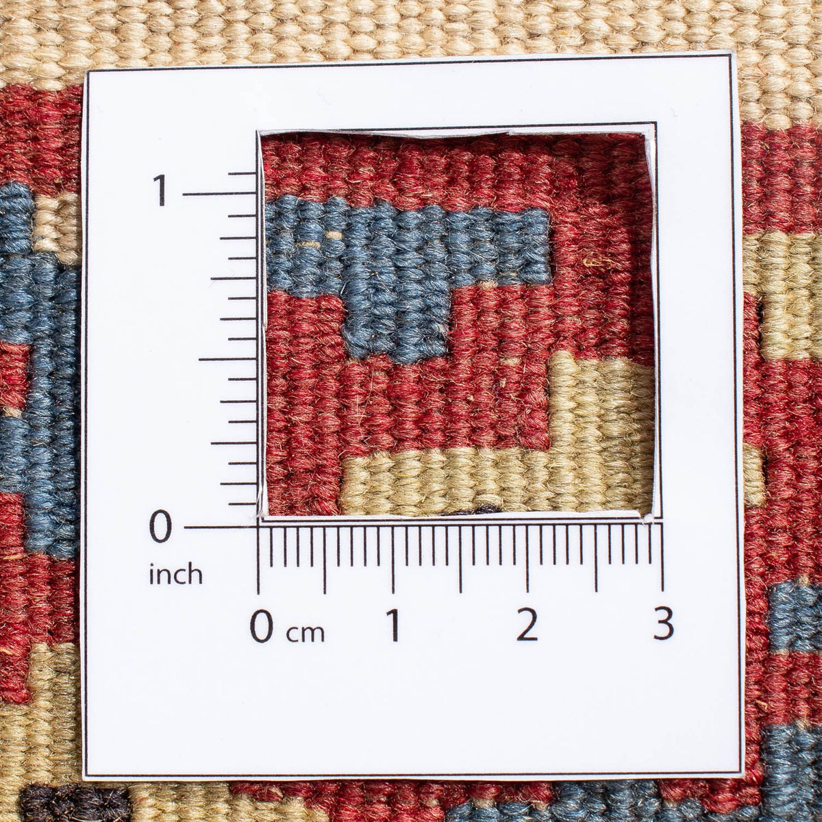 Dieser kunstvolle Kelim - Oriental besticht das Auge mit seinen angesagten Farben. So bringt er eine moderne und harmonische Eleganz in Ihr Wohnambiente mit ein. Kelim Teppiche sind im Gegensatz zu klassischen Orientteppichen in traditioneller Art handgewebt statt geknüpft. In anderen Ländern werden diese Exemplare auch als Kissen oder Vorhänge genutzt. Diese Teppiche haben einen dünnen Flor, für das feste Obergewebe wird 100% Schurwolle verwendet, welche von Natur aus äußerst pflegeleicht und strapazierbar ist. Als echten Kelim bezeichnen Experten nur Teppiche, welche in der Türkei, dem Kaukasusgebiet, Persien, Afghanistan und Turkmenien hergestellt wurden. Echte Teppiche aus dem Orient eben.