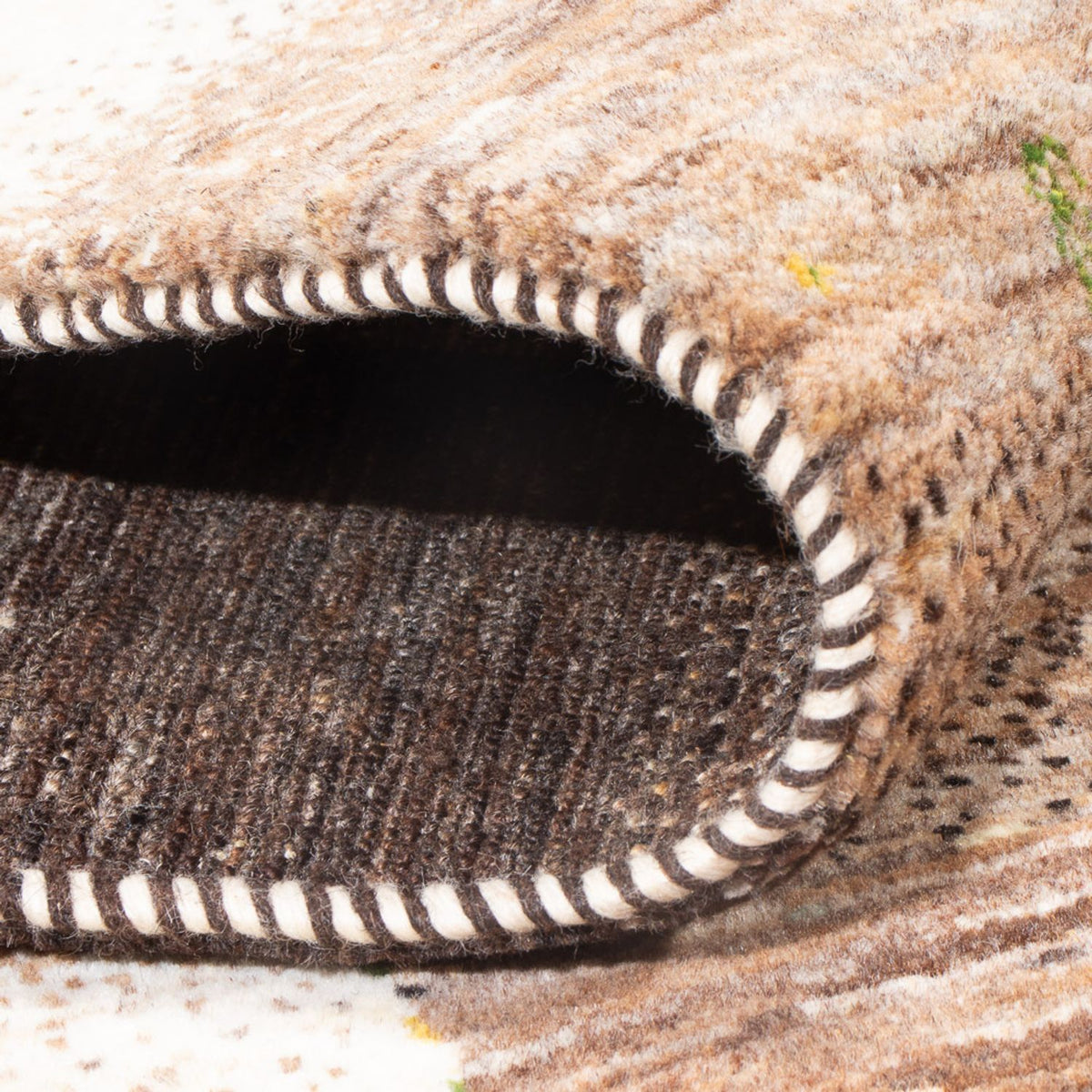Die handgesponnene Wolle verleiht dem Teppich eine einzigartige, leicht strukturierte Oberfläche mit dezentem Glanz – ein Zeichen echter Handwerkskunst. Gleichzeitig wirkt das Material temperaturausgleichend, schmutzabweisend und sorgt für ein behagliches Raumklima.