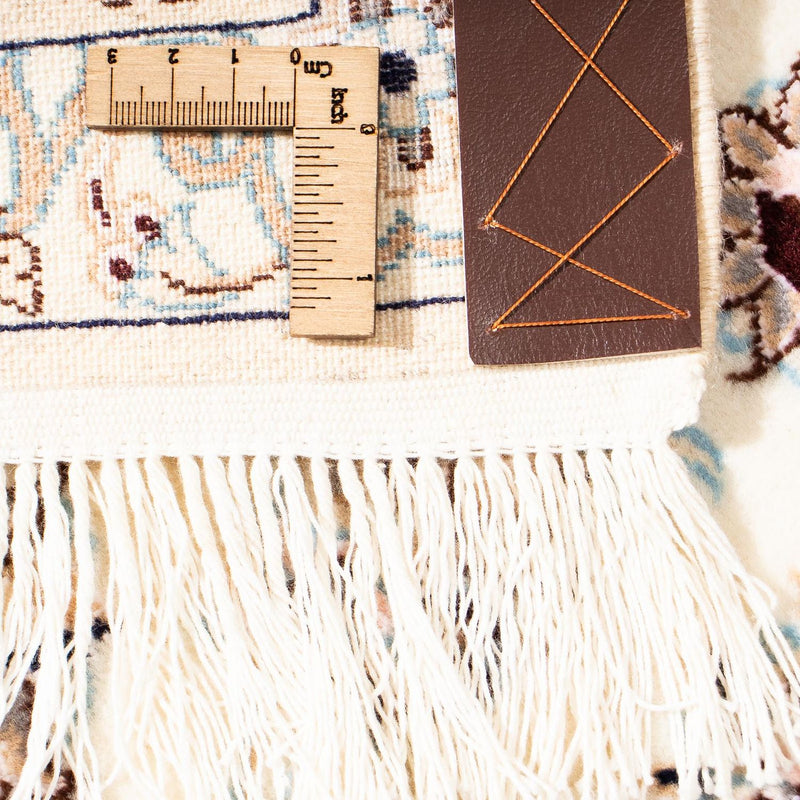 Dieser schöne und selten fein geknüpfte Perserteppich – Nain – Premium gehört zur höchsten Qualitätsstufe 4 mit circa 890.000 bis 1.000.000 Knoten pro Quadratmeter. Dem feinen Nain 6La, ist der Ruhm der Provenienz zu verdanken. Er gilt im gesamten Orient als besonders hochwertiger persischer Teppich. Nain Teppiche werden in hervorragender Feinheit geknüpft. Als Flormaterial wird meist beste, samtartige Korkwolle und immer Seide verwendet, damit eine exakte Musterung von Medaillons und All Over-Musterung ausgeführt werden kann. Man unterscheidet den Nain in 4 Qualitätsstufen, die in „La“ angegeben werden. 4La, 6La, 9La, 12La. Dies ist eine Qualitätsbezeichnung und bezieht sich auf die Anzahl der Fadenschichten, die in jedem Kettenfaden enthalten sind. Je geringerer die angegebene Zahl ist, desto feiner und dichter ist der Teppich. Nains gehören zu den Schönsten auf der Welt. Sie sind bei Sammlern sehr beliebt. Durch ihre schlichte Eleganz passen Nains auch in moderne Einrichtungen.