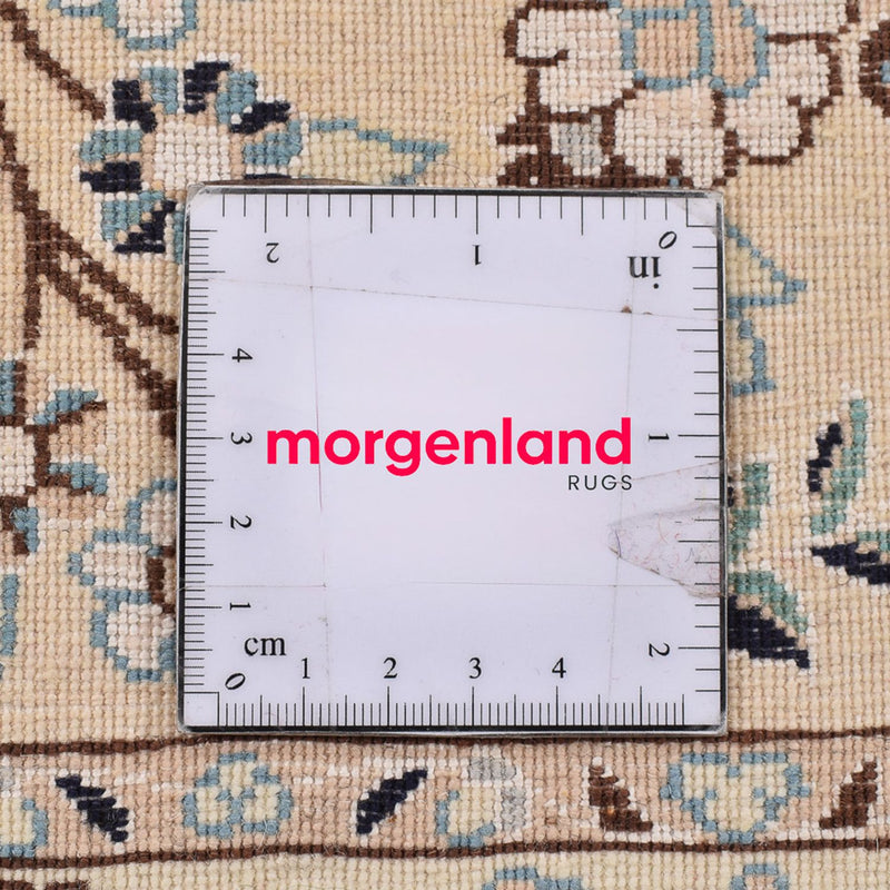 Dieser schöne und selten fein geknüpfte Perserteppich – Nain – Premium gehört zur höchsten Qualitätsstufe 4 mit circa 890.000 bis 1.000.000 Knoten pro Quadratmeter. Dem feinen Nain 6La, ist der Ruhm der Provenienz zu verdanken. Er gilt im gesamten Orient als besonders hochwertiger persischer Teppich. Nain Teppiche werden in hervorragender Feinheit geknüpft. Als Flormaterial wird meist beste, samtartige Korkwolle und immer Seide verwendet, damit eine exakte Musterung von Medaillons und All Over-Musterung ausgeführt werden kann. Man unterscheidet den Nain in 4 Qualitätsstufen, die in „La“ angegeben werden. 4La, 6La, 9La, 12La. Dies ist eine Qualitätsbezeichnung und bezieht sich auf die Anzahl der Fadenschichten, die in jedem Kettenfaden enthalten sind. Je geringerer die angegebene Zahl ist, desto feiner und dichter ist der Teppich. Nains gehören zu den Schönsten auf der Welt. Sie sind bei Sammlern sehr beliebt. Durch ihre schlichte Eleganz passen Nains auch in moderne Einrichtungen.