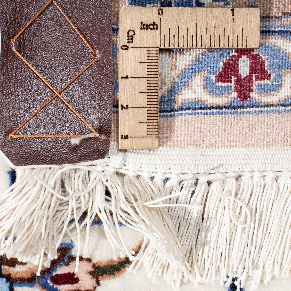 Dieser schöne und selten fein geknüpfte Perserteppich – Nain – Premium gehört zur höchsten Qualitätsstufe 4 mit circa 890.000 bis 1.000.000 Knoten pro Quadratmeter. Dem feinen Nain 6La, ist der Ruhm der Provenienz zu verdanken. Er gilt im gesamten Orient als besonders hochwertiger persischer Teppich. Nain Teppiche werden in hervorragender Feinheit geknüpft. Als Flormaterial wird meist beste, samtartige Korkwolle und immer Seide verwendet, damit eine exakte Musterung von Medaillons und All Over-Musterung ausgeführt werden kann. Man unterscheidet den Nain in 4 Qualitätsstufen, die in „La“ angegeben werden. 4La, 6La, 9La, 12La. Dies ist eine Qualitätsbezeichnung und bezieht sich auf die Anzahl der Fadenschichten, die in jedem Kettenfaden enthalten sind. Je geringerer die angegebene Zahl ist, desto feiner und dichter ist der Teppich. Nains gehören zu den Schönsten auf der Welt. Sie sind bei Sammlern sehr beliebt. Durch ihre schlichte Eleganz passen Nains auch in moderne Einrichtungen.