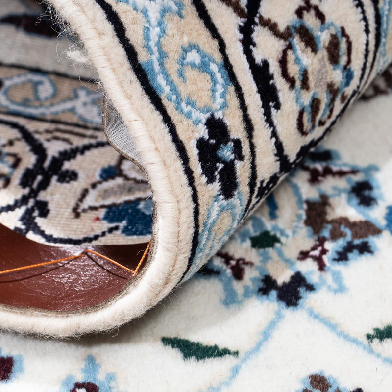 Dieser fein von Hand geknüpfte Nain 9La passt sich perfekt in Ihrem Zuhause an. Er besteht aus Korkwolle und feinster Seide, wodurch er sich besonders weich unter den Füßen anfühlt und durch seinen Glanz eine luxuriöse Atmosphäre schafft. Der Perserteppich – Nain – Royal gehört zu der hohen Qualitätsstufe 3 mit circa 250.000 bis 360.000 Knoten pro Quadratmeter. Das heißt, dass er sehr dicht ist und so eine Langlebigkeit garantiert. Egal, welchen Einrichtungsstil sie bei sich im Haus bevorzugen – mit einem Nain Teppich treffen Sie immer die richtige Wahl.