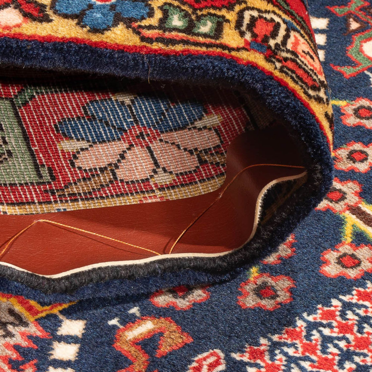 Rustikaler Charme, warme Naturtöne in Indigoblau und Rot und besondere Strapazierfähigkeit zeichnen den Bachtiar aus. Handversponnene iranische Hochlandwolle verleiht ihm sanften Glanz. Der 'türkische Knüpfknoten' sorgt für die robuste Oberfläche. Bachtiar gilt als einer der einfachsten unter den Perserteppichen. Sie werden traditionell von Hand in den Dörfern rund um die iranische Stadt Hamedan geknüpft. Jeder Teppich ist ein phantasievolles Einzelstück. Kleine Unregelmäßigkeiten im Muster weisen darauf hin. Bachtiars sind wunderschöne Teppiche mit einem attraktiven Preis-Leistungsverhältnis.