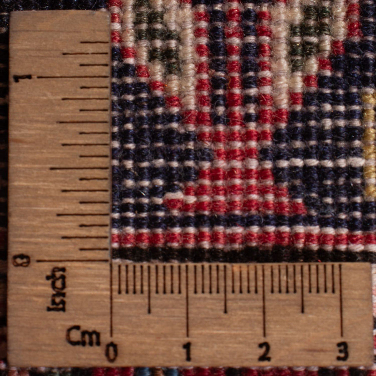 Dieser farbenfrohe Abadeh Teppich ist mit sehr viel Aufwand von Hand geknüpft. Ein äußerst ansprechender und strapazierfähiger Teppich, der in der Stadt Abadeh im Südwesten Persiens geknüpft wird. Die kleine Stadt Abadeh liegt zwischen Isfahan und Shiraz. Das Muster ist von den Nomaden beeinflusst und besteht häufig aus einem Hexagon in der Mitte mit einer Rosette oder einem Medaillon.