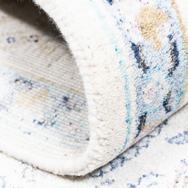 Die handgesponnene Wolle verleiht dem Teppich eine einzigartige, leicht strukturierte Oberfläche mit dezentem Glanz – ein Zeichen echter Handwerkskunst. Gleichzeitig wirkt das Material temperaturausgleichend, schmutzabweisend und sorgt für ein behagliches Raumklima.
