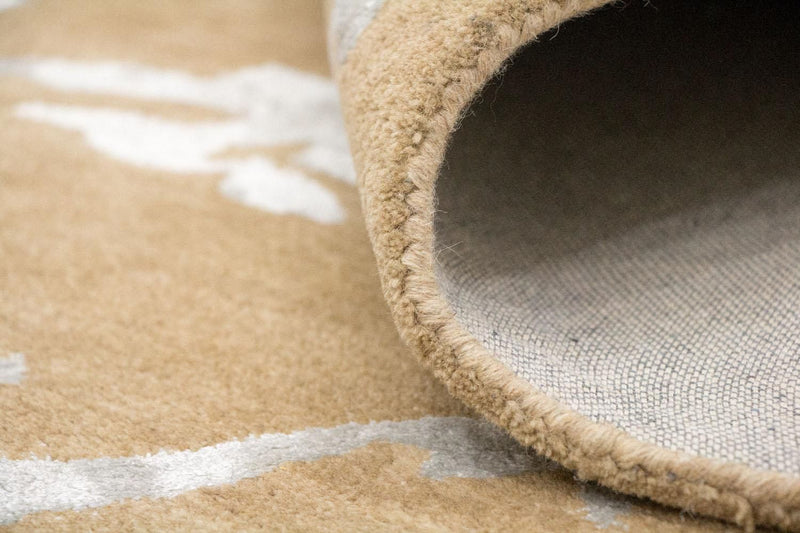 Die handgesponnene Wolle verleiht dem Teppich eine einzigartige, leicht strukturierte Oberfläche mit dezentem Glanz – ein Zeichen echter Handwerkskunst. Gleichzeitig wirkt das Material temperaturausgleichend, schmutzabweisend und sorgt für ein behagliches Raumklima.