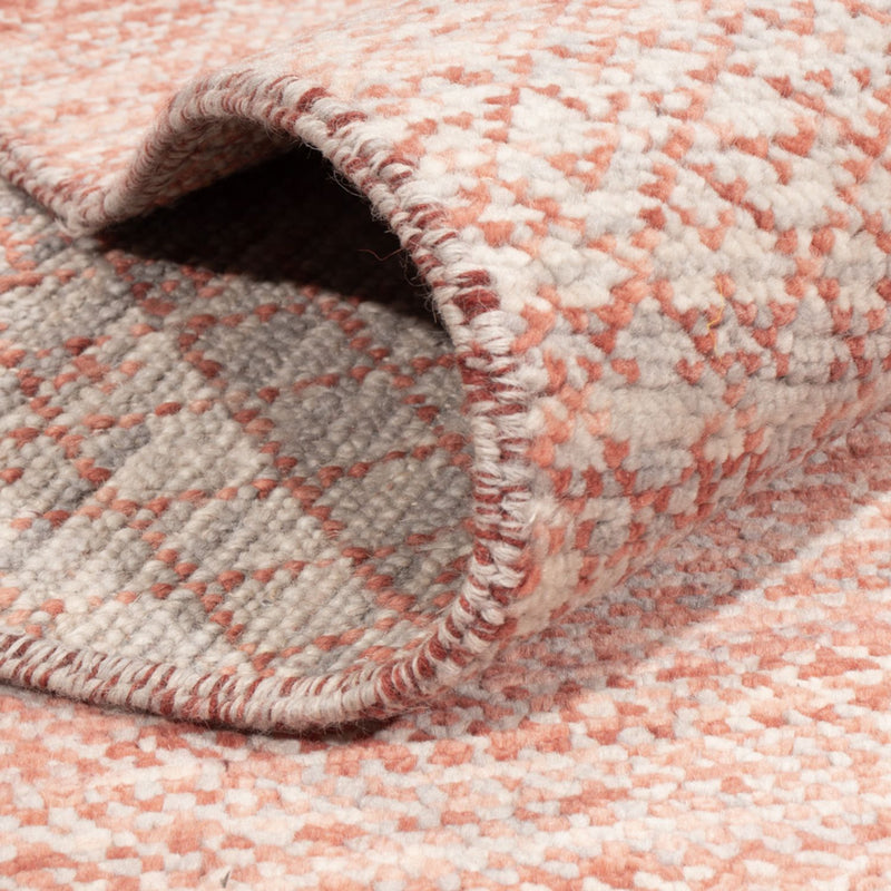 Für diesen Teppich wird ausschließlich handgesponnene Schafwolle verwendet. Durch die sorgfältige, manuelle Verarbeitung bleiben die natürlichen Eigenschaften der Wolle optimal erhalten: Sie ist robust, elastisch und besitzt eine angenehme Weichheit, die man bei jedem Schritt spürt.