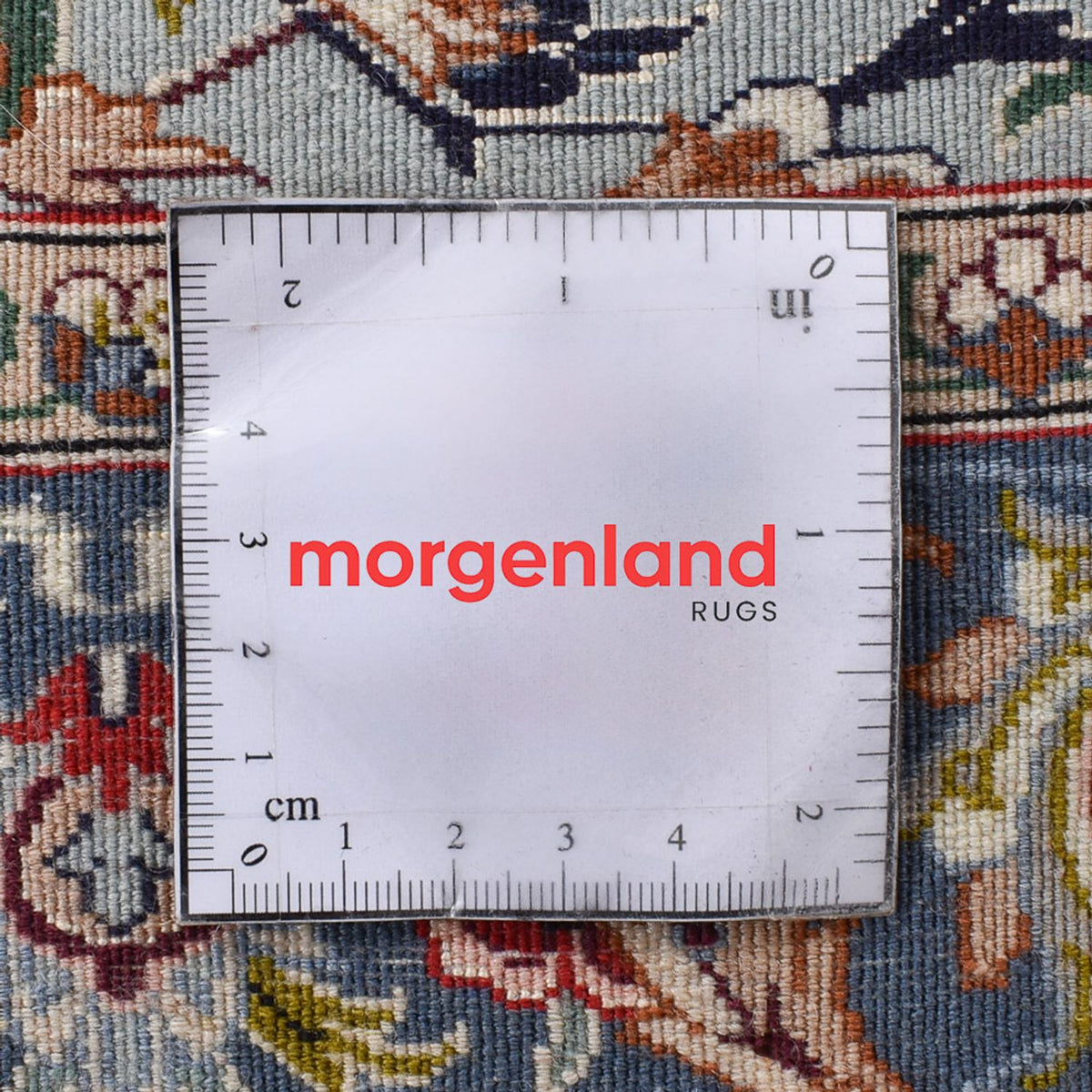 Dieser Perserteppich – Isfahan – Premium bring Luxus in dein Haus! Dieses Exemplar besteht zu 100% aus Seide und gehört der höchsten Qualitätsstufe 4 an. Seine Knotendichte von circa 890.000 bis 1.000.000 Knoten pro Quadratmeter verspricht beste Qualität und Strapazierfähigkeit. Teppiche aus Isfahan muss man als erlesenes Kunsthandwerk ansehen. Isfahan ist die wohl schönste Stadt des Islam und dieser Teppich ist ein bedeutender Teil davon. Kunstvolle Medaillons, Flächen gefüllt mit Vasen, Vögeln oder Wildtieren schmücken den Isfahan Teppich und machen ihn mit seiner Detailtreue, seiner hohen Knotendichte und seinem seidigen Glanz zu einem der beliebtesten und zugleich zum hochwertigsten Perserteppich. Hohe Qualitäten beim Material sind selbstverständlich. Daher besitzt er auch häufig eine Kette aus Seide. Noch heute tragen viele Isfahan Teppiche am Rand eingeknüpfte Signaturen. Einen Teppich wie diesen kann man stundenlang betrachten und die Zeit dabei vergessen - ein Erlebnis, das man nicht per Foto festhalten kann.