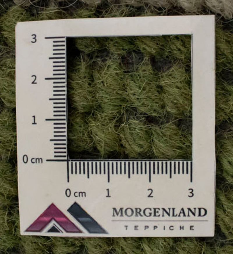 Für diesen Teppich wird ausschließlich handgesponnene Schafwolle verwendet. Durch die sorgfältige, manuelle Verarbeitung bleiben die natürlichen Eigenschaften der Wolle optimal erhalten: Sie ist robust, elastisch und besitzt eine angenehme Weichheit, die man bei jedem Schritt spürt.