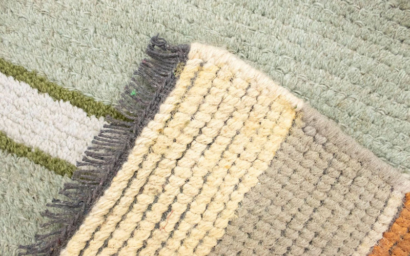 Für diesen Teppich wird ausschließlich handgesponnene Schafwolle verwendet. Durch die sorgfältige, manuelle Verarbeitung bleiben die natürlichen Eigenschaften der Wolle optimal erhalten: Sie ist robust, elastisch und besitzt eine angenehme Weichheit, die man bei jedem Schritt spürt.