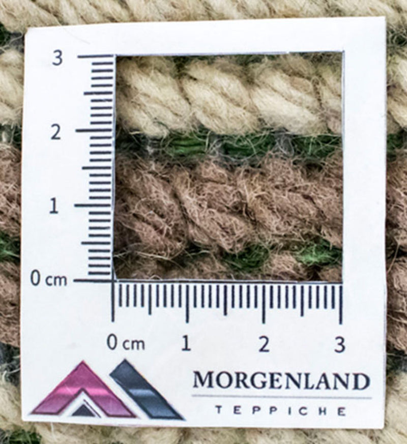 Für diesen Teppich wird ausschließlich handgesponnene Schafwolle verwendet. Durch die sorgfältige, manuelle Verarbeitung bleiben die natürlichen Eigenschaften der Wolle optimal erhalten: Sie ist robust, elastisch und besitzt eine angenehme Weichheit, die man bei jedem Schritt spürt.