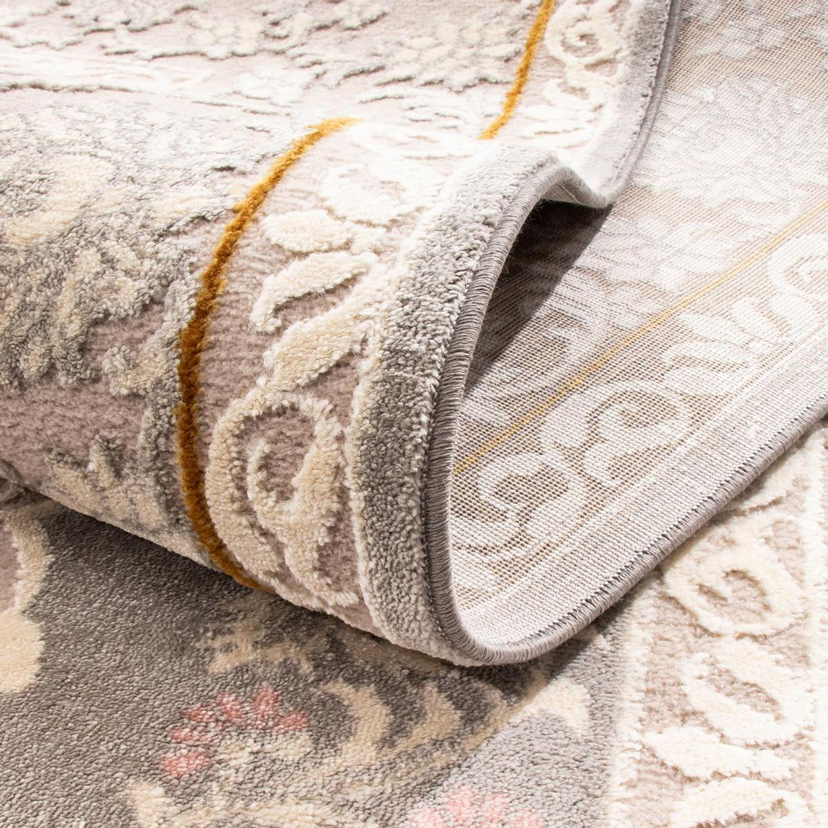 Entdecken Sie den eleganten orientalischen Webteppich »Shirin« in stilvollem Silber, der als Läufer und als runder Teppich erhältlich ist. Dieser Teppich kombiniert traditionelle Muster mit modernen Farben und bringt eine luxuriöse Atmosphäre in Ihr Zuhause. Die hochwertige Verarbeitung und die Liebe zum Detail machen „Shirin“ zur perfekten Wahl für Flure, Wohn- oder Schlafzimmer. Verleihen Sie Ihren Räumen einen Hauch von Eleganz und Stil und genießen Sie den Komfort und die Schönheit dieses einzigartigen Teppichs.