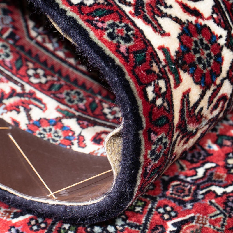 Ein Stück Orient für Zuhause! Dieser Bidjar Teppich stammt aus einer kurdischen Kleinstadt im westlichen Persien und ist bekannt für seine Strapazierfähigkeit und Robustheit durch seine besonders feste Knüpfung durch den traditionellen türkischen Knoten. Diese Technik macht den Teppich schmutzabweisend und garantiert seine Langlebigkeit: sein Flor wird mit einem Kamm so fest zusammengedrückt, dass er beinahe senkrecht nach oben steht. Beliebt ist das Herati-Muster als Design, es kommen jedoch auch Medaillon- und Blumenmusterungen vor.