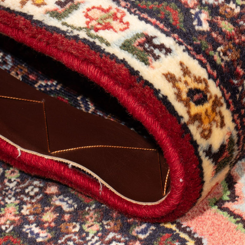 Der Senneh Teppich ist handgefertigt und besteht aus robustem Material. Er ist in der Provinz Kurdistan im westlichen Teil des Irans geknüpft worden und ist besonders langlebig und widerstandsfähig. Sein detailreiches Muster und seine belastbare Struktur machen ihn zu einem perfekten Wohnelement für stark frequentierte Räume wie Flur oder Wohnzimmer.