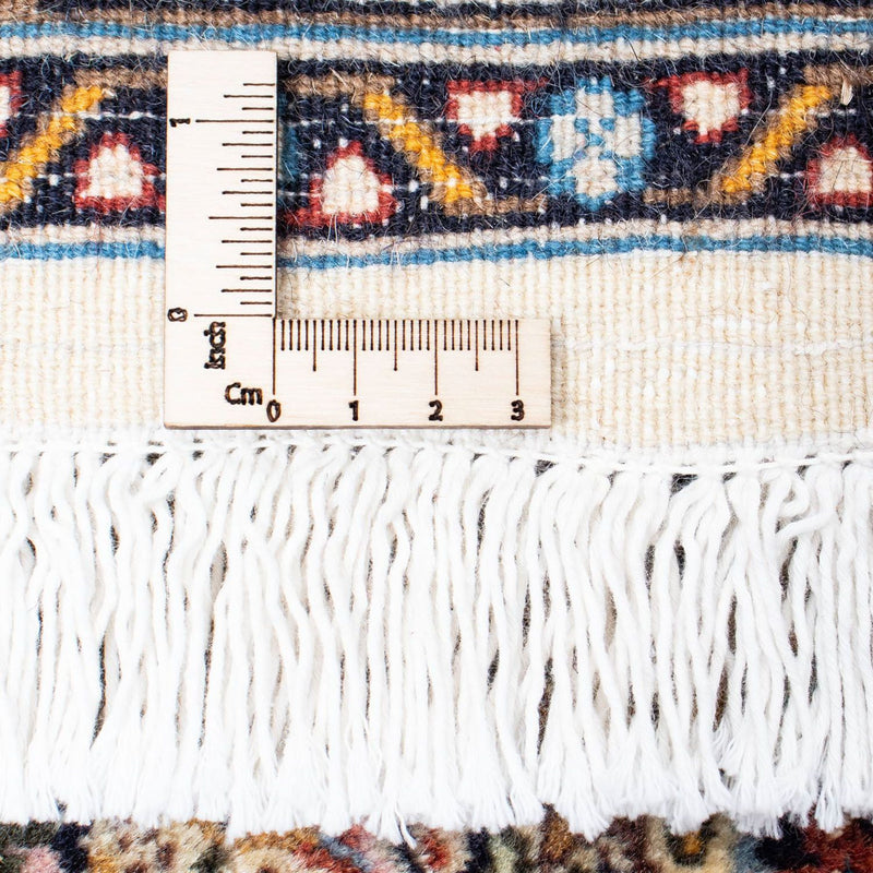 Der handgeknüpfte Teppich aus Moud, einer der größten Städte des Irans, ist ein echtes Kunstwerk. Er wurde aus reiner Naturwolle gefertigt und von erfahrenen Handwerkern sorgfältig geknüpft. Diese hochwertigen Teppiche sind bekannt für ihre außergewöhnlichen Größen und ihre extrem hochwertige Wolle. Neben ihrer Schönheit sind Moud-Teppiche auch äußerst pflegeleicht. Sie können einfach mit einem Staubsauger oder einem Besen gereinigt werden, um Schmutz und Staub zu entfernen. Wenn nötig, kann der Teppich auch mit einem milden Reinigungsmittel und Wasser gereinigt werden. Aufgrund ihrer hohen Qualität und ihrer langlebigen Natur sind Moud-Teppiche eine ausgezeichnete Investition für jeden Teppichliebhaber. Sie sind nicht nur eine schöne Ergänzung für jedes Zuhause, sondern auch eine pflegeleichte und praktische Wahl. Egal, ob Sie sich für einen klassischen oder einen modernen Stil entscheiden, ein Moud-Teppich wird Ihrem Zuhause eine unvergleichliche Eleganz und Stil verleihen.