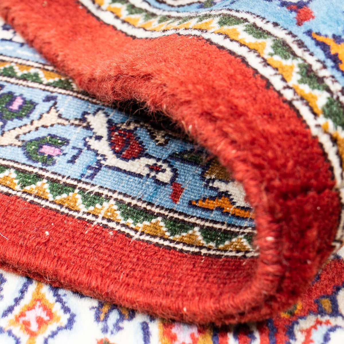 Der handgeknüpfte Teppich aus Moud, einer der größten Städte des Irans, ist ein echtes Kunstwerk. Er wurde aus reiner Naturwolle gefertigt und von erfahrenen Handwerkern sorgfältig geknüpft. Diese hochwertigen Teppiche sind bekannt für ihre außergewöhnlichen Größen und ihre extrem hochwertige Wolle. Neben ihrer Schönheit sind Moud-Teppiche auch äußerst pflegeleicht. Sie können einfach mit einem Staubsauger oder einem Besen gereinigt werden, um Schmutz und Staub zu entfernen. Wenn nötig, kann der Teppich auch mit einem milden Reinigungsmittel und Wasser gereinigt werden. Aufgrund ihrer hohen Qualität und ihrer langlebigen Natur sind Moud-Teppiche eine ausgezeichnete Investition für jeden Teppichliebhaber. Sie sind nicht nur eine schöne Ergänzung für jedes Zuhause, sondern auch eine pflegeleichte und praktische Wahl. Egal, ob Sie sich für einen klassischen oder einen modernen Stil entscheiden, ein Moud-Teppich wird Ihrem Zuhause eine unvergleichliche Eleganz und Stil verleihen.