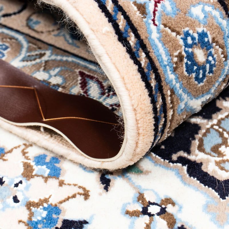 Dieser fein von Hand geknüpfte Nain 9La passt sich perfekt in Ihrem Zuhause an. Er besteht aus Korkwolle und feinster Seide, wodurch er sich besonders weich unter den Füßen anfühlt und durch seinen Glanz eine luxuriöse Atmosphäre schafft. Der Perserteppich – Nain – Royal gehört zu der hohen Qualitätsstufe 3 mit circa 250.000 bis 360.000 Knoten pro Quadratmeter. Das heißt, dass er sehr dicht ist und so eine Langlebigkeit garantiert. Egal, welchen Einrichtungsstil sie bei sich im Haus bevorzugen – mit einem Nain Teppich treffen Sie immer die richtige Wahl.