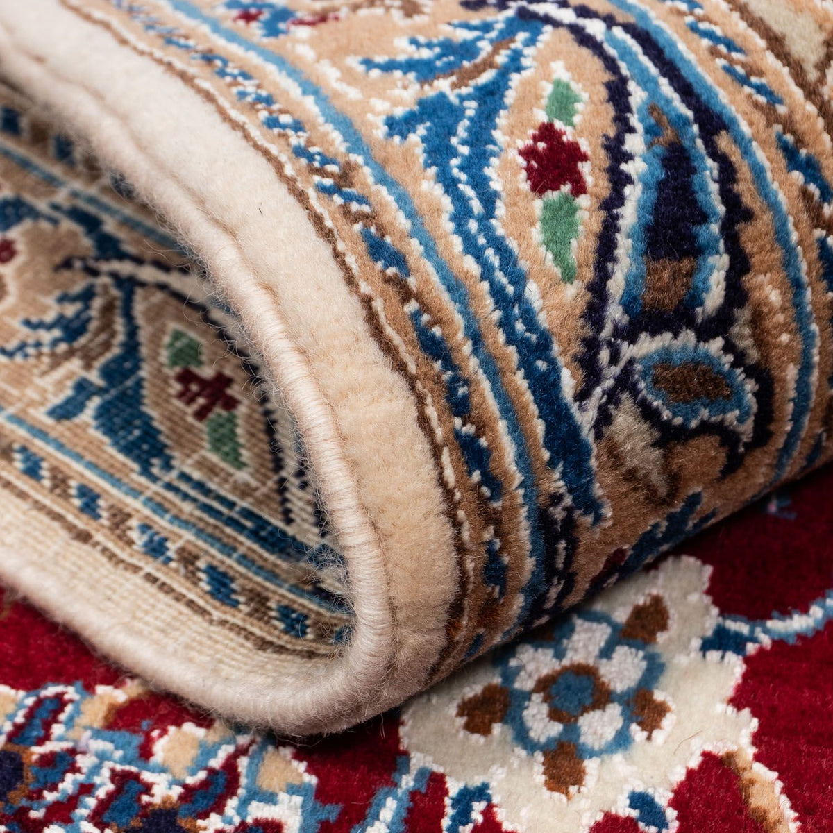 Dieser fein von Hand geknüpfte Nain 9La passt sich perfekt in Ihrem Zuhause an. Er besteht aus Korkwolle und feinster Seide, wodurch er sich besonders weich unter den Füßen anfühlt und durch seinen Glanz eine luxuriöse Atmosphäre schafft. Der Perserteppich – Nain – Royal gehört zu der hohen Qualitätsstufe 3 mit circa 250.000 bis 360.000 Knoten pro Quadratmeter. Das heißt, dass er sehr dicht ist und so eine Langlebigkeit garantiert. Egal, welchen Einrichtungsstil sie bei sich im Haus bevorzugen – mit einem Nain Teppich treffen Sie immer die richtige Wahl.