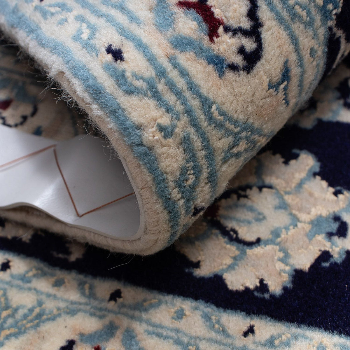 Dieser fein von Hand geknüpfte Nain 9La passt sich perfekt in Ihrem Zuhause an. Er besteht aus Korkwolle und feinster Seide, wodurch er sich besonders weich unter den Füßen anfühlt und durch seinen Glanz eine luxuriöse Atmosphäre schafft. Der Perserteppich – Nain – Royal gehört zu der hohen Qualitätsstufe 3 mit circa 250.000 bis 360.000 Knoten pro Quadratmeter. Das heißt, dass er sehr dicht ist und so eine Langlebigkeit garantiert. Egal, welchen Einrichtungsstil sie bei sich im Haus bevorzugen – mit einem Nain Teppich treffen Sie immer die richtige Wahl.