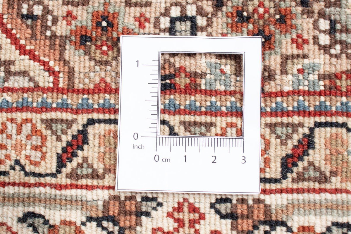 Der Täbriz gehört zu den schönsten seiner Klasse. Diese Teppiche begründeten den guten Ruf der persischen Knüpfkunst. Er ist ein sehr beliebter Teppich aus eines der besten Knüpfgebiete Persiens. Sie haben oft ein großes, zentral platziertes Medaillon aus schönen Blumenmotiven, ein typisch orientalisches Motiv. Täbriz-Teppiche haben häufig die zusätzliche Bezeichnung Raj. Man unterscheidet zwischen 40, 50, 60, 70, 80 Raj. Je höher die angegebene Zahl ist, desto feiner und dichter ist der Teppich geknüpft. Raj ist eine Qualitätsbezeichnung und bezieht sich auf die Anzahl der Knoten auf einer Breite von ca. 70 mm. Aufgrund der dichten Knüpfung und dem kurzen Flor ist der Teppich strapazierfähig, unempfindlich und auch für extreme Benutzung gut geeignet.