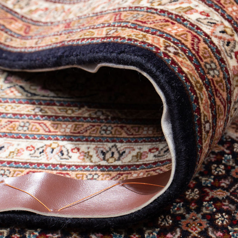 Die handgesponnene Wolle verleiht dem Teppich eine einzigartige, leicht strukturierte Oberfläche mit dezentem Glanz – ein Zeichen echter Handwerkskunst. Gleichzeitig wirkt das Material temperaturausgleichend, schmutzabweisend und sorgt für ein behagliches Raumklima.
