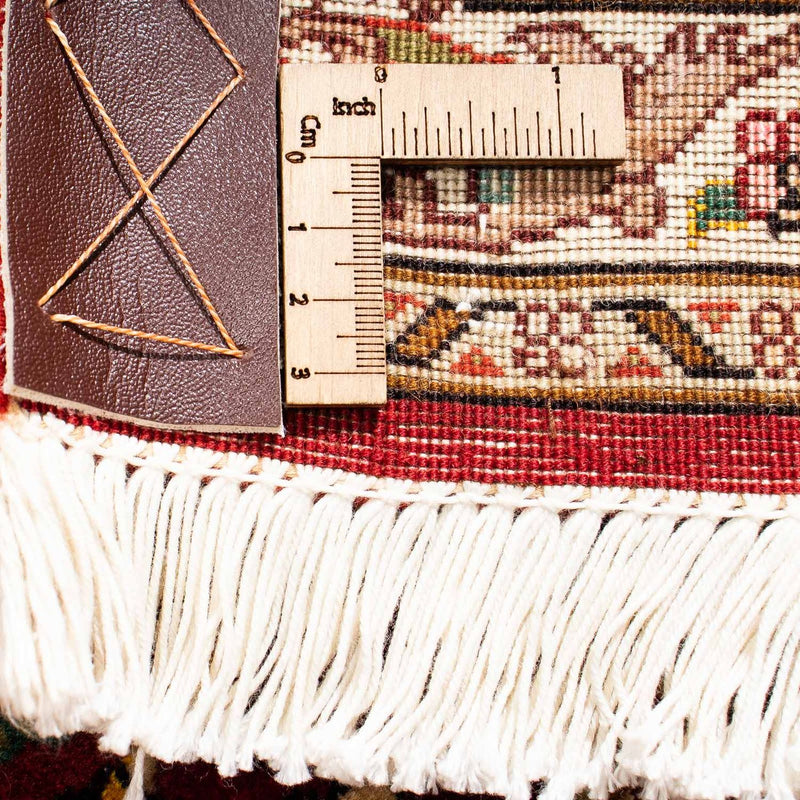 Dieser fein geknüpfte Perserteppich - Täbriz – Royal ist mit hochwertiger Korkwolle, in sorgfältiger und fehlerfreier Handarbeit gefertigt. Der Täbriz 40 Raj gehört zu den schönsten seiner Klasse. Diese Teppiche begründeten den guten Ruf der persischen Knüpfkunst. Er ist ein sehr beliebter Teppich aus einem der besten Knüpfgebiete Persiens. Sie haben oft ein großes, zentral platziertes Medaillon aus schönen Blumenmotiven, ein typisch orientalisches Motiv. Täbriz-Teppiche haben häufig die zusätzliche Bezeichnung Raj. Man unterscheidet zwischen 40, 50, 60, 70, 80 Raj. Je höher die angegebene Zahl ist, desto feiner und dichter ist der Teppich geknüpft. Raj ist eine Qualitätsbezeichnung und bezieht sich auf die Anzahl der Knoten auf einer Breite von ca. 70 mm. Aufgrund der dichten Knüpfung ist der Teppich strapazierfähig, unempfindlich und auch für extreme Benutzung gut geeignet. Klassische Eleganz und Farb-Opulenz zeichnen diesen edlen Teppich aus.