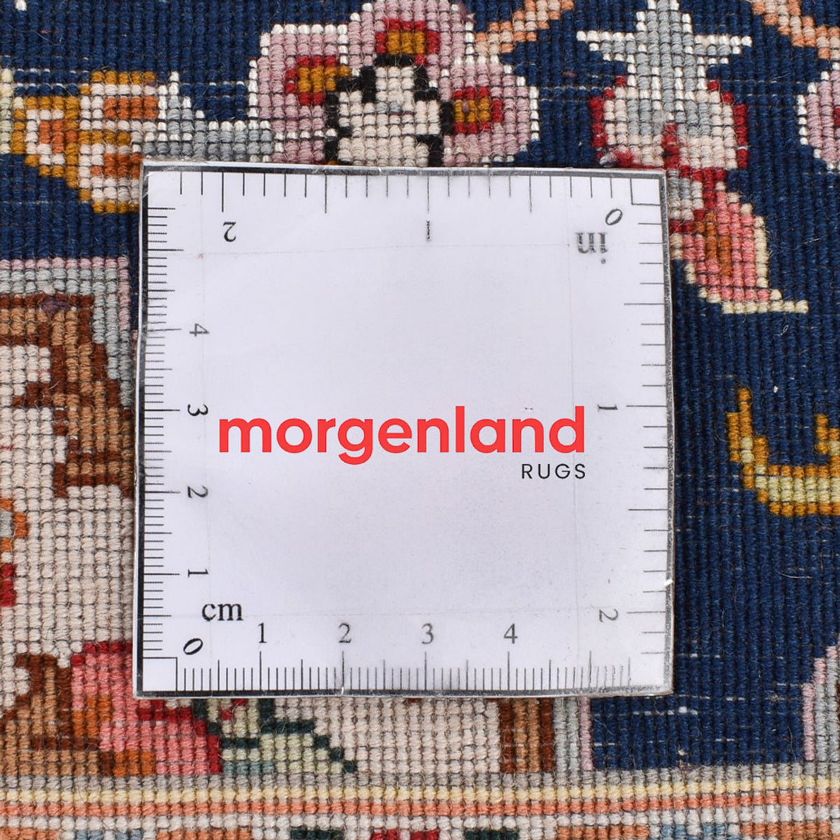 Dieser fein geknüpfte Perserteppich - Täbriz – Royal ist mit hochwertiger Korkwolle, in sorgfältiger und fehlerfreier Handarbeit gefertigt. Der Täbriz 40 Raj gehört zu den schönsten seiner Klasse. Diese Teppiche begründeten den guten Ruf der persischen Knüpfkunst. Er ist ein sehr beliebter Teppich aus einem der besten Knüpfgebiete Persiens. Sie haben oft ein großes, zentral platziertes Medaillon aus schönen Blumenmotiven, ein typisch orientalisches Motiv. Täbriz-Teppiche haben häufig die zusätzliche Bezeichnung Raj. Man unterscheidet zwischen 40, 50, 60, 70, 80 Raj. Je höher die angegebene Zahl ist, desto feiner und dichter ist der Teppich geknüpft. Raj ist eine Qualitätsbezeichnung und bezieht sich auf die Anzahl der Knoten auf einer Breite von ca. 70 mm. Aufgrund der dichten Knüpfung ist der Teppich strapazierfähig, unempfindlich und auch für extreme Benutzung gut geeignet. Klassische Eleganz und Farb-Opulenz zeichnen diesen edlen Teppich aus.