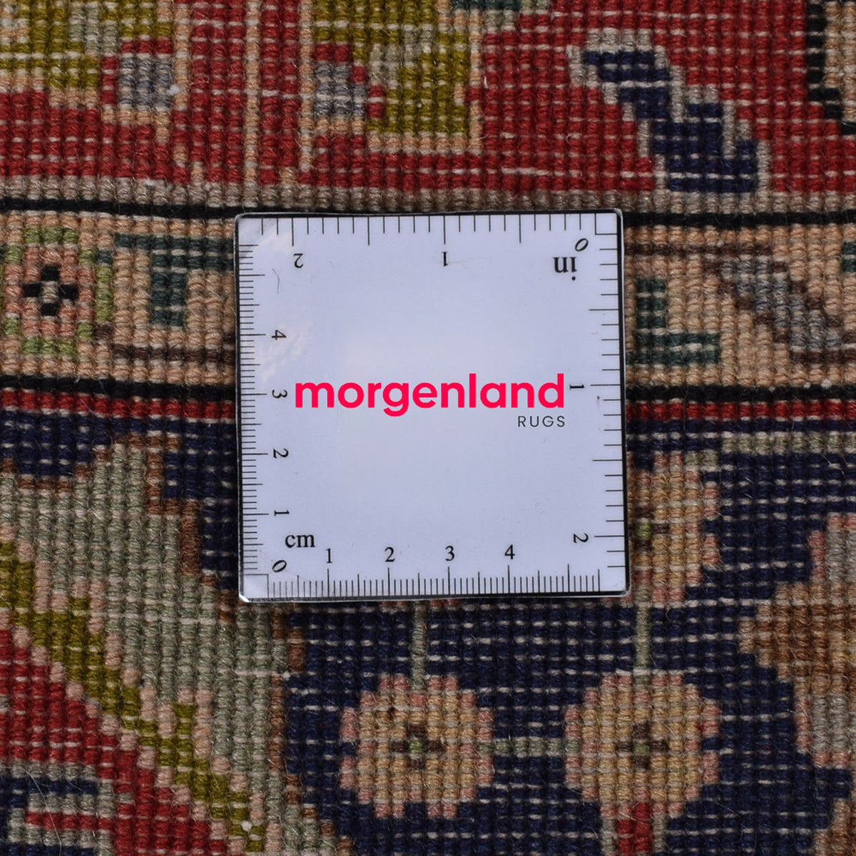 Traditionell von Hand geknüpfte Teppiche gelten nach wie vor als Inbegriff höchster Qualität unter den Teppicharten. Je nach Art der Knoten zeichnen sie sich durch außergewöhnliche Langlebigkeit und Widerstandsfähigkeit aus – oft überdauern sie mehrere Generationen. Die Feinheit der Knüpfung beeinflusst maßgeblich die Darstellung von Ornamenten und Mustern: Je dichter geknüpft, desto detailreicher das Design. Diese Präzision erfordert jedoch nicht nur viel Zeit, sondern auch ein hohes Maß an handwerklichem Geschick und Erfahrung. Die Knotendichte gilt daher als wichtiger Indikator für den Wert eines Teppichs. Dennoch bedeutet eine hohe Knüpfdichte nicht automatisch bessere Qualität – auch Teppiche mit groberer Struktur können hervorragend verarbeitet sein.
