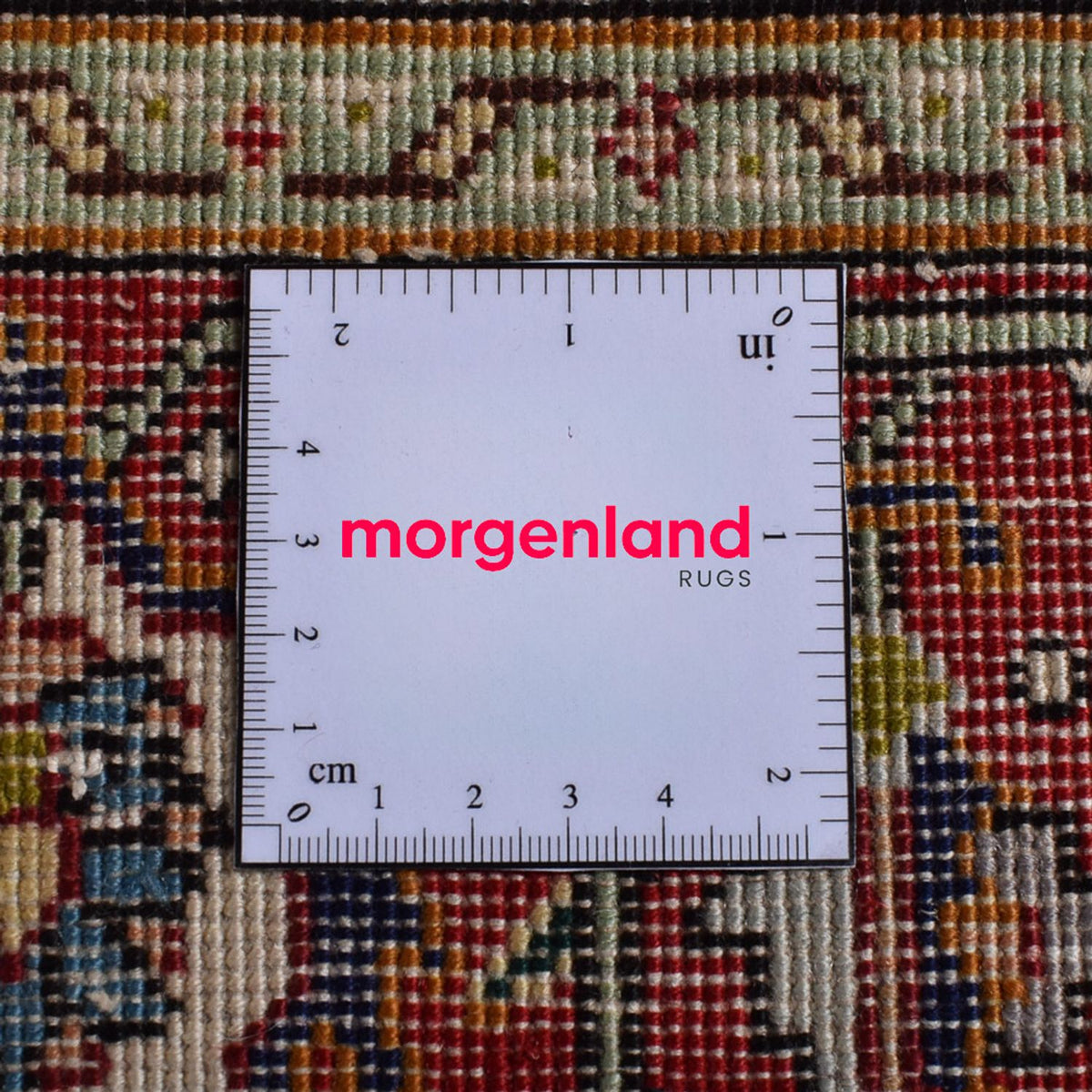 Traditionell von Hand geknüpfte Teppiche gelten nach wie vor als Inbegriff höchster Qualität unter den Teppicharten. Je nach Art der Knoten zeichnen sie sich durch außergewöhnliche Langlebigkeit und Widerstandsfähigkeit aus – oft überdauern sie mehrere Generationen. Die Feinheit der Knüpfung beeinflusst maßgeblich die Darstellung von Ornamenten und Mustern: Je dichter geknüpft, desto detailreicher das Design. Diese Präzision erfordert jedoch nicht nur viel Zeit, sondern auch ein hohes Maß an handwerklichem Geschick und Erfahrung. Die Knotendichte gilt daher als wichtiger Indikator für den Wert eines Teppichs. Dennoch bedeutet eine hohe Knüpfdichte nicht automatisch bessere Qualität – auch Teppiche mit groberer Struktur können hervorragend verarbeitet sein.