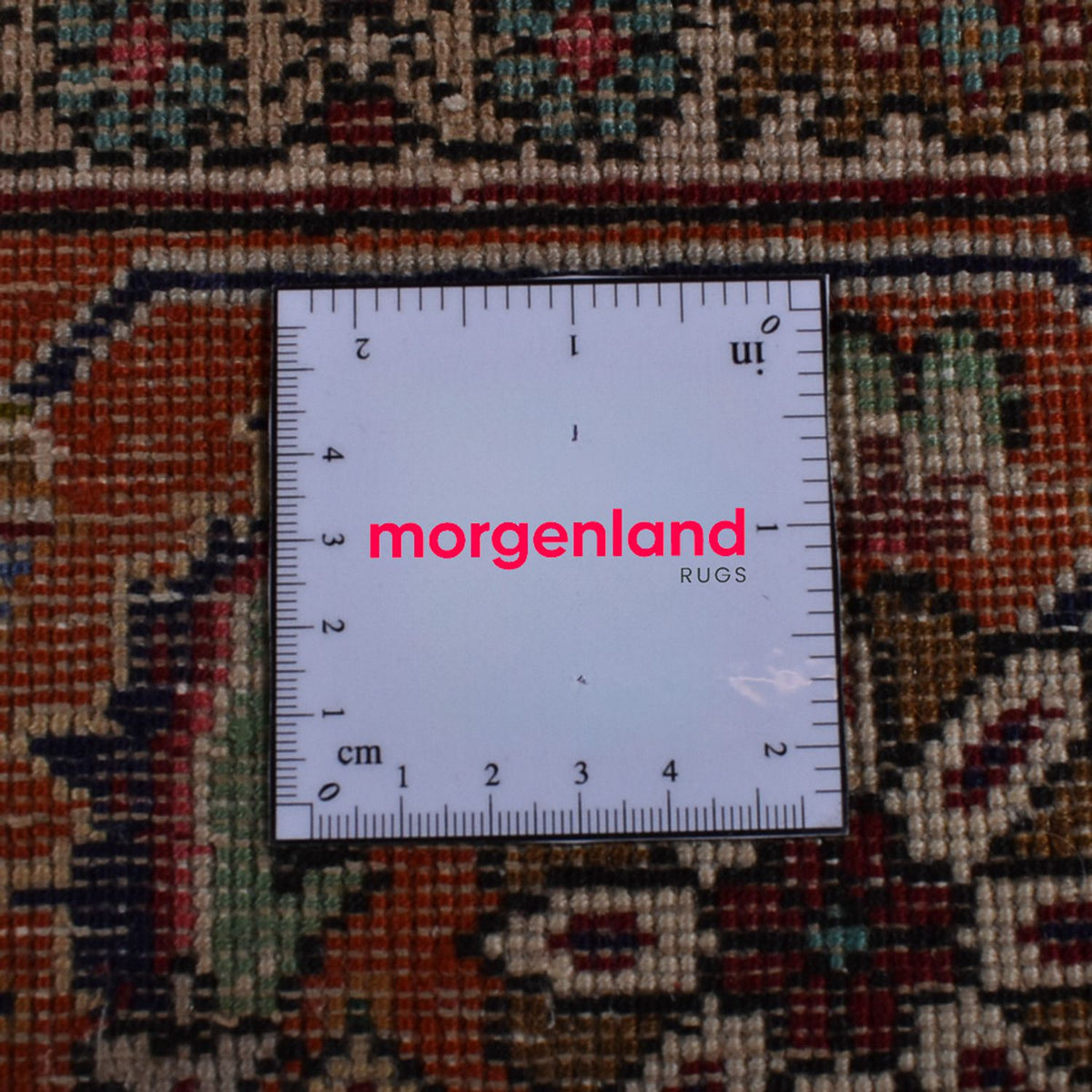 Der Täbriz gehört zu den schönsten seiner Klasse. Diese Teppiche begründeten den guten Ruf der persischen Knüpfkunst. Er ist ein sehr beliebter Teppich aus eines der besten Knüpfgebiete Persiens. Sie haben oft ein großes, zentral platziertes Medaillon aus schönen Blumenmotiven, ein typisch orientalisches Motiv. Täbriz-Teppiche haben häufig die zusätzliche Bezeichnung Raj. Man unterscheidet zwischen 40, 50, 60, 70, 80 Raj. Je höher die angegebene Zahl ist, desto feiner und dichter ist der Teppich geknüpft. Raj ist eine Qualitätsbezeichnung und bezieht sich auf die Anzahl der Knoten auf einer Breite von ca. 70 mm. Aufgrund der dichten Knüpfung und dem kurzen Flor ist der Teppich strapazierfähig, unempfindlich und auch für extreme Benutzung gut geeignet.