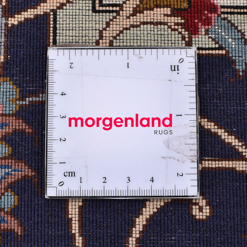 Dieser fein geknüpfte Perserteppich - Täbriz – Royal ist mit hochwertiger Korkwolle, in sorgfältiger und fehlerfreier Handarbeit gefertigt. Der Täbriz 40 Raj gehört zu den schönsten seiner Klasse. Diese Teppiche begründeten den guten Ruf der persischen Knüpfkunst. Er ist ein sehr beliebter Teppich aus einem der besten Knüpfgebiete Persiens. Sie haben oft ein großes, zentral platziertes Medaillon aus schönen Blumenmotiven, ein typisch orientalisches Motiv. Täbriz-Teppiche haben häufig die zusätzliche Bezeichnung Raj. Man unterscheidet zwischen 40, 50, 60, 70, 80 Raj. Je höher die angegebene Zahl ist, desto feiner und dichter ist der Teppich geknüpft. Raj ist eine Qualitätsbezeichnung und bezieht sich auf die Anzahl der Knoten auf einer Breite von ca. 70 mm. Aufgrund der dichten Knüpfung ist der Teppich strapazierfähig, unempfindlich und auch für extreme Benutzung gut geeignet. Klassische Eleganz und Farb-Opulenz zeichnen diesen edlen Teppich aus.